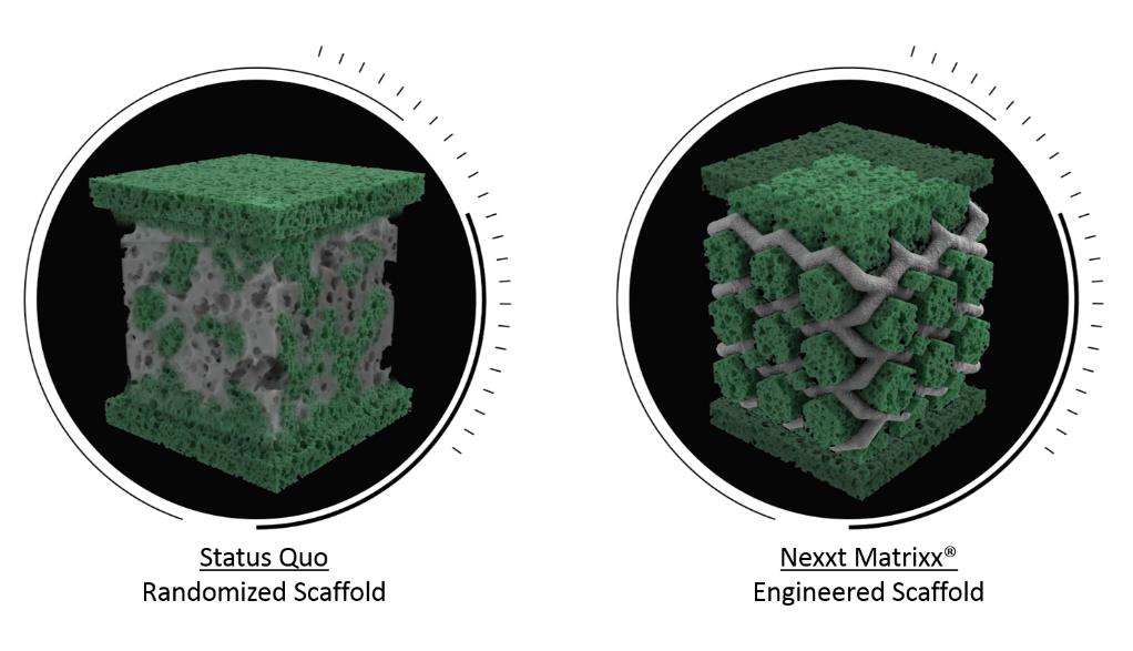 L’un des produits phares de l’entreprise, lancé en 2017, est son système Nexxt Matrixx®, une collection d’implants de fusion rachidienne en titane poreux qui entrelacent une technologie de texturation de surface hautement différenciée avec un échafaudage cellulaire imprimé en 3D novateur.